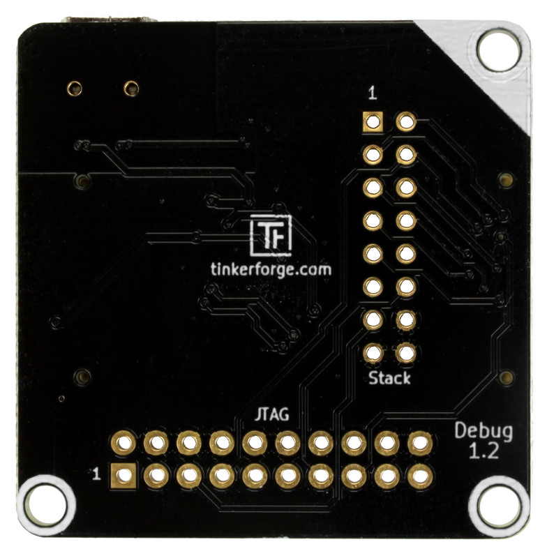 Ein Debug Brick kann zum Debuggen der Low Level C Firmware von Bricks und Bricklets benutzt werden. Es ist nicht dafür gedacht für PC basierte Programmierung genutzt zu werden.