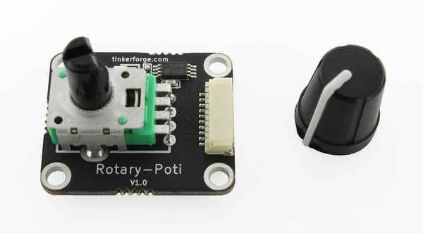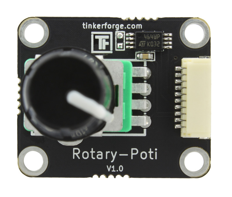 The Rotary Poti Bricklet is equipped with a 1-turn rotary potentiometer. It can be connected to a Brick, with which the position of the slider can be read out. With configurable events it is possible to react on changing positions without polling.
